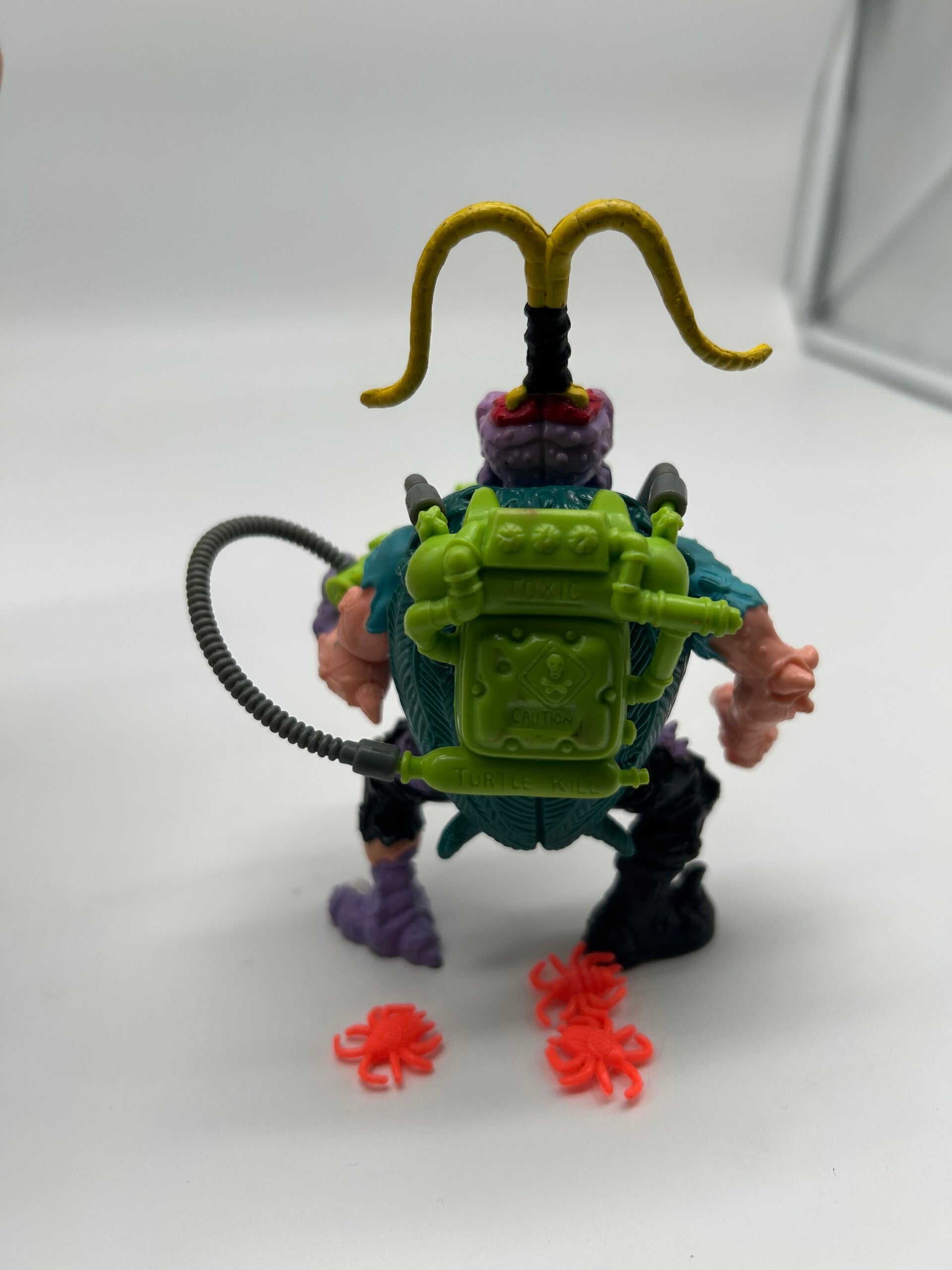 Zum Verkauf steht die detailreich gestaltete Vintage-Actionfigur Scumbug aus der beliebten Teenage Mutant Ninja Turtles Reihe. Das ausgefallene, insektenartige Design macht die Figur zu einem besonderen Sammlerstück für Fans klassischer TMNT-Actionfiguren.
